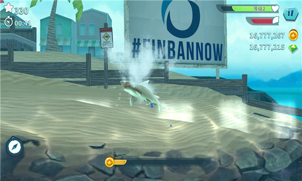 3、各种不同类型的鲨鱼角色选择,隐藏的成就解锁,挑战自己。