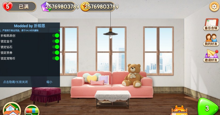 4、不断解锁更多玩法,多种炫酷的道具以及装饰品任你使用,装扮你的小屋。