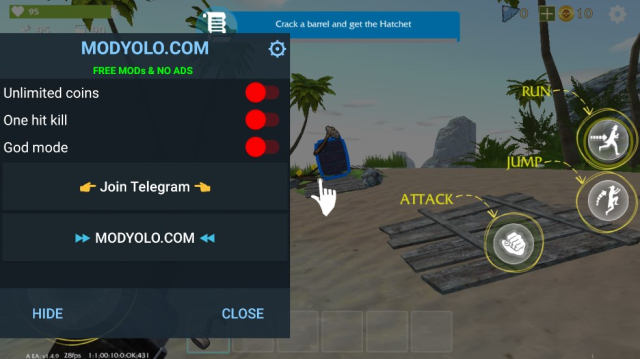 2.你的工作是不要害怕,如果你不想死在这个神秘的荒岛上,你必须首先找到水和食物,利用森林中的溪流取水,并制作一个简单的木筏来捕捉——鱼作为食物,为第二天提供能量。