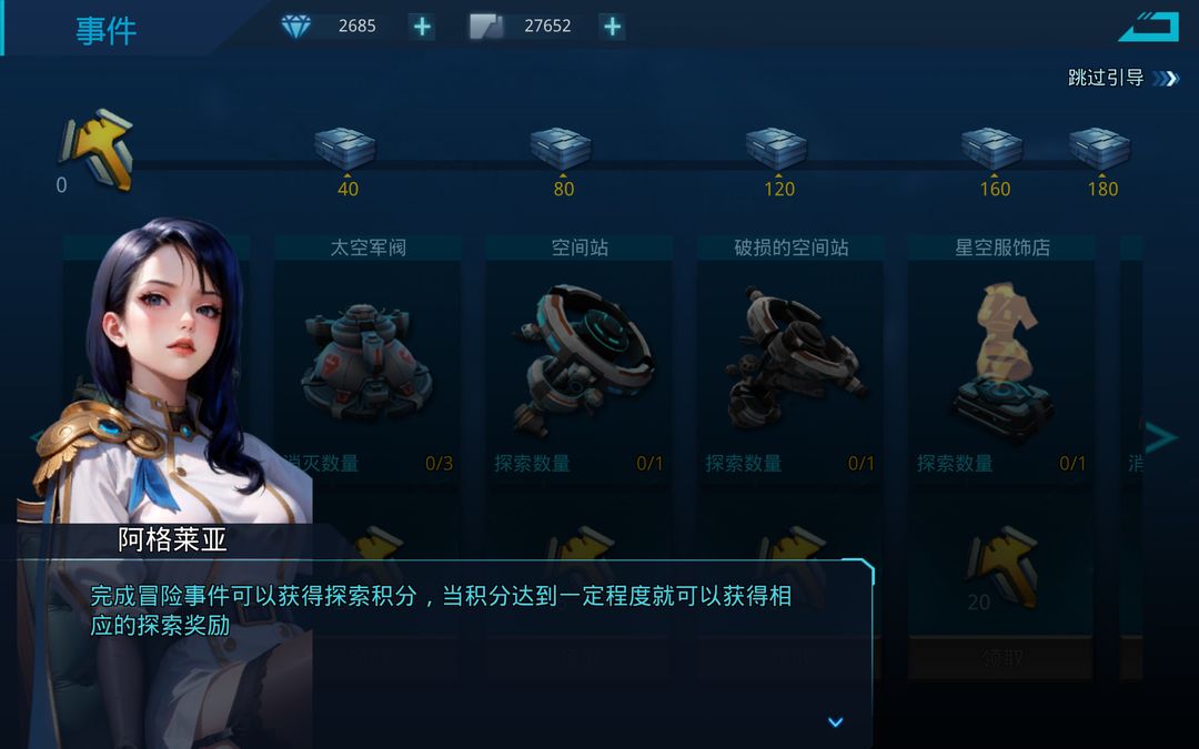 事件元素:海盗,冒险者,空间站等,可以在事件里获得积分的元素,一共35个(如下图)