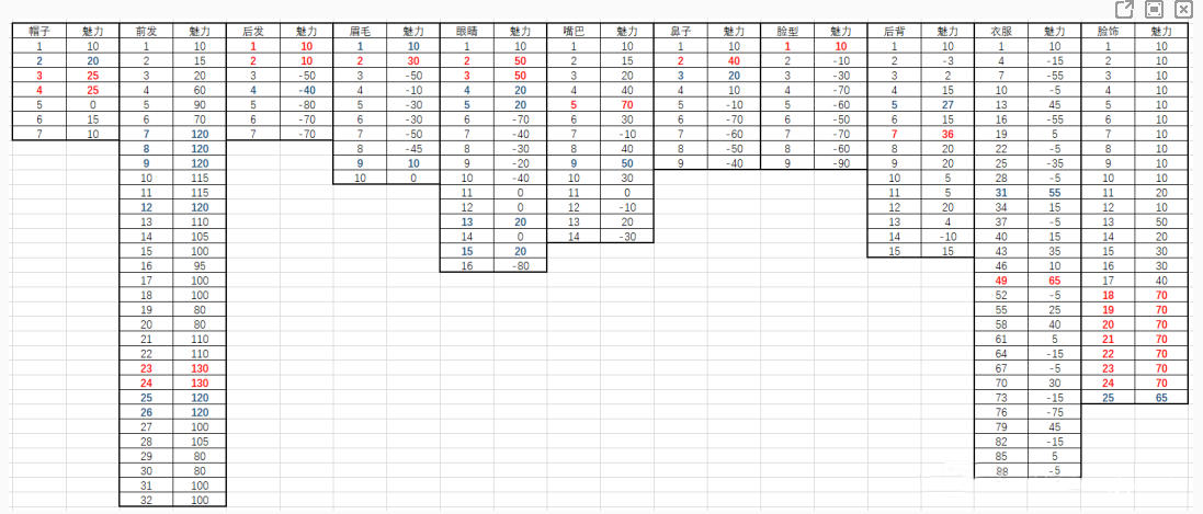 背后7、鼻子2、眉毛2、后发1、整套魅力值691点,魅力评价绝对是仙姿。