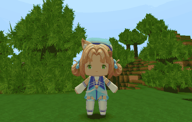 选择我们刚刚制作的挥手动作,点击保存并应用,进入地图就可以看到站立状态下角色已经变成挥手动作啦: