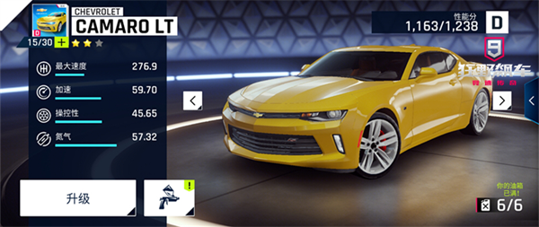 CAMARO LT在新手时期作用比较大,第一章很多关卡都能用上。当车辆升到3星之后,氮气效果非常强,所以建议前期重点强化,有条件的话,还可以先给该车辆安装零件。