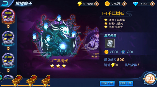 中间,左下,右下都是出怪的地方,中间是boss出生的位置,会释放隐身,周围范围都能隐身,隐身的时候无法攻击,只能用技能攻击隐身,然后输出,第二章的三小关的三星都不困难,没什么技巧,多试试就能三星通关了。