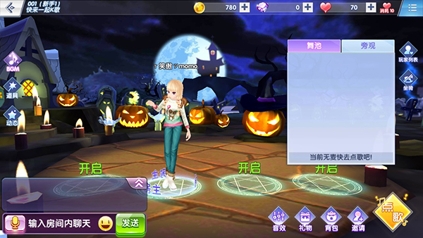 唱舞团的K歌玩法中,可以8个人一起游戏的。进入游戏房间的小伙伴可以自由点歌,系统会根据点歌的先后排麦,按顺序安排大家一一演唱。在唱歌的同时还可以根据系统的自己喜好调节歌曲的混响效果;如果不想唱了想休息,也可以直接切歌,或是开启伴唱功能大家一起听歌聊天。各位唱舞达人们在演唱时,每句歌词都会获得评分,分数会累积越来越高,如果漏唱了就会miss不但拿不到分数,红心里的血槽也会减少。当血槽空了游戏就结束了。唱歌和跳舞结束后的战绩页面,在自动关闭之前点击保存,可以将视频记录下来。