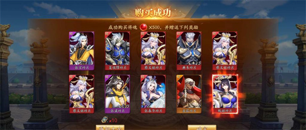 前期大家除了登录赠送的50抽之外,在新手指引环节也是能拿到2个橙色武将,分别是公孙瓒以及祝融,足够小伙伴通过前期的关卡。第一次十连抽基本上都是15资质的攻击武将,基本上能够保证大家前期顺利的通过剧情任务,后面等50抽后破解阵营召唤,玩家可以自己选择想要的培养的阵营(前期不是土豪玩家不建议培养多阵营)。