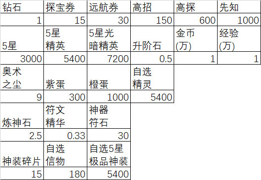 首先我梳理了下充值给的道具,真可谓琳琅满目五花八门,为了能够评估这些道具的价值,所以我先把将这些道具跟钻石做了换算关系,换算的标准有两个