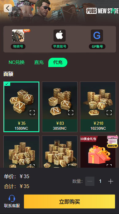 在游戏中,很多武器装备是需要使用点券购买的,玩家可以自行充值或者去第三方渠道充值,但是海外游戏的充值往往会比较麻烦,不仅需要外国的手机号、信用卡等,还需要使用梯子方能进入,这些限制使得很多玩家无法快速完成绝地求生2未来之役手游的充值,所以推荐大家使用代充平台进行充值。