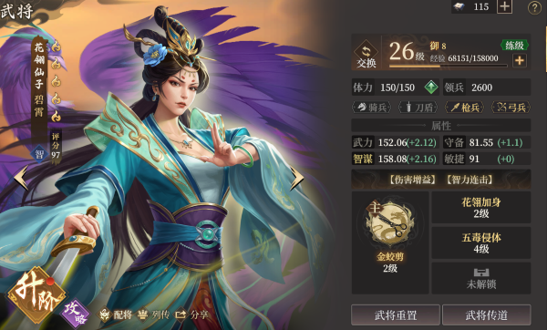 碧霄作为【妙道神机】卡包中的稀有武将,拥有出色的智力与武力成长值,是兼具辅助与输出能力的多面手。其独特之处在于同时适配枪兵与弓兵两种兵种,展现出极强的战场适应性。无论是前期资源开荒阶段,还是后期大规模攻城作战,碧霄都能找到合适的阵容定位。更值得一提的是,该武将具备全队兵种转换的特殊能力,能根据战局需要灵活调整部队配置,为玩家提供极大的战术弹性空间。