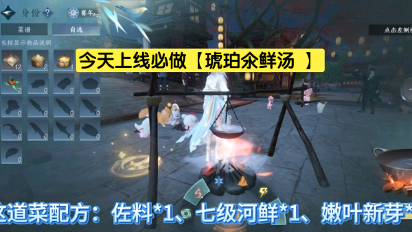 逆水寒手游琥珀氽鲜汤配方及材料获取方法 2025-07-28 08:14:21 11 在「逆水寒手游」中,琥珀氽鲜汤是一道需要沙与海之歌1级才能破解的料理。玩家可在菜单栏-身份-烹调界面,使用佐料x1、七级河鲜x1和嫩叶新芽x2进行制作。下面为大家详细介绍琥珀氽鲜汤的配方及材料获取方法,感兴趣的少侠快来看看吧!