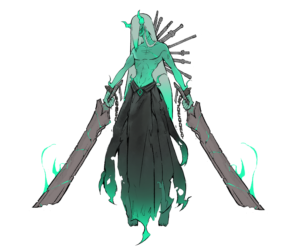 2、双刀魔还会投下竖把武器插入地面,并持续对周围发射弹幕攻击。