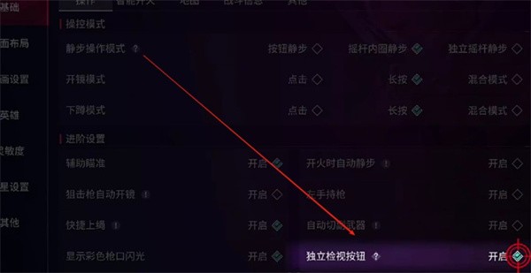 1、开启检视功能 进入游戏主界面,点击右上角的齿轮图标进入设置。选择基础设置中的操作设置,找到“独立检视按钮”选项并开启。